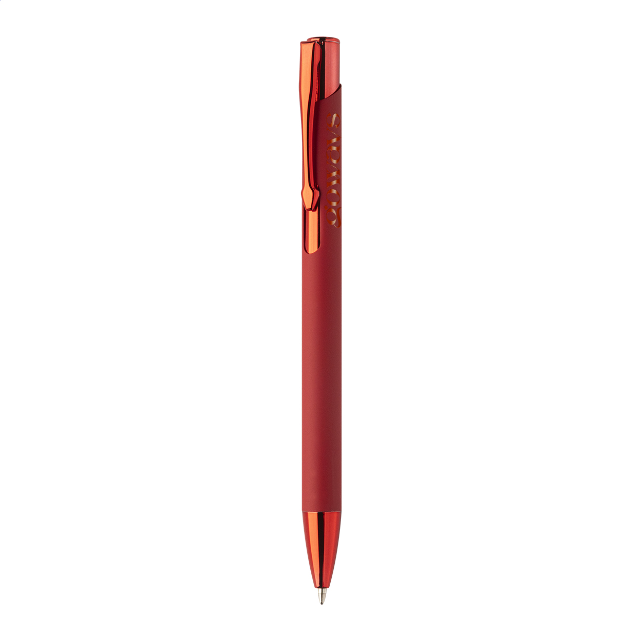 Recycled aluminium ballpoint pen with rubberized body and coloured shiny metallic finish parts. With special coating for mirror engraving matching the metallic parts. With blue refill.
