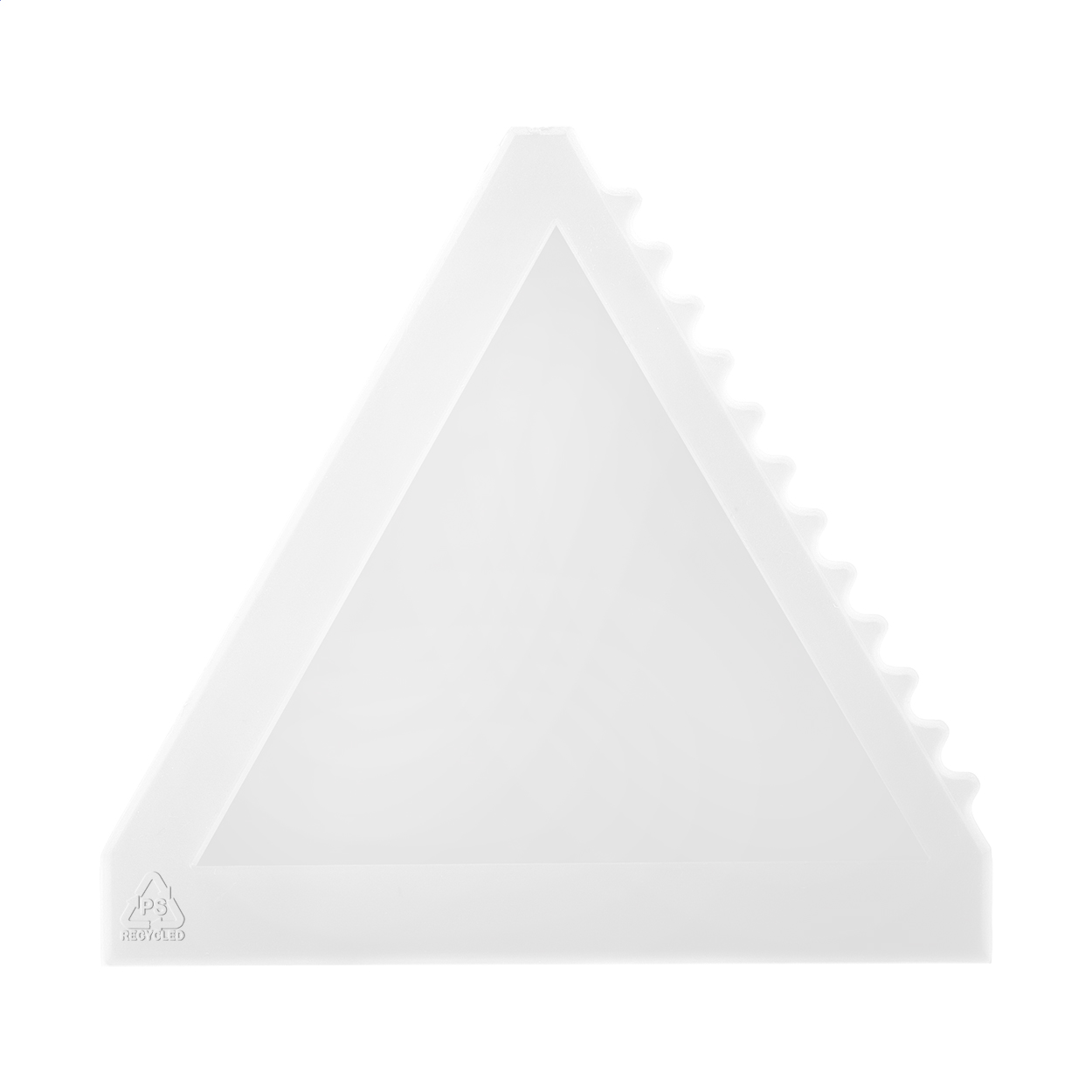 Triangle shaped recycled PS plastic ice scraper.